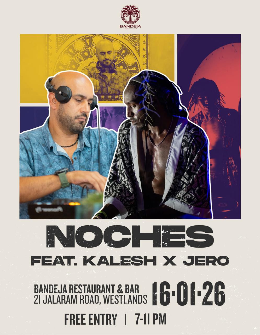 we are back this Friday 16th with NOCHES, feat. @dj_kalesh_e & @jeremykimbo full-on back-to-back. Deep grooves, flowing cocktails, great flavors and that late-night Bandeja energy. Come hungry. Leave dancing.